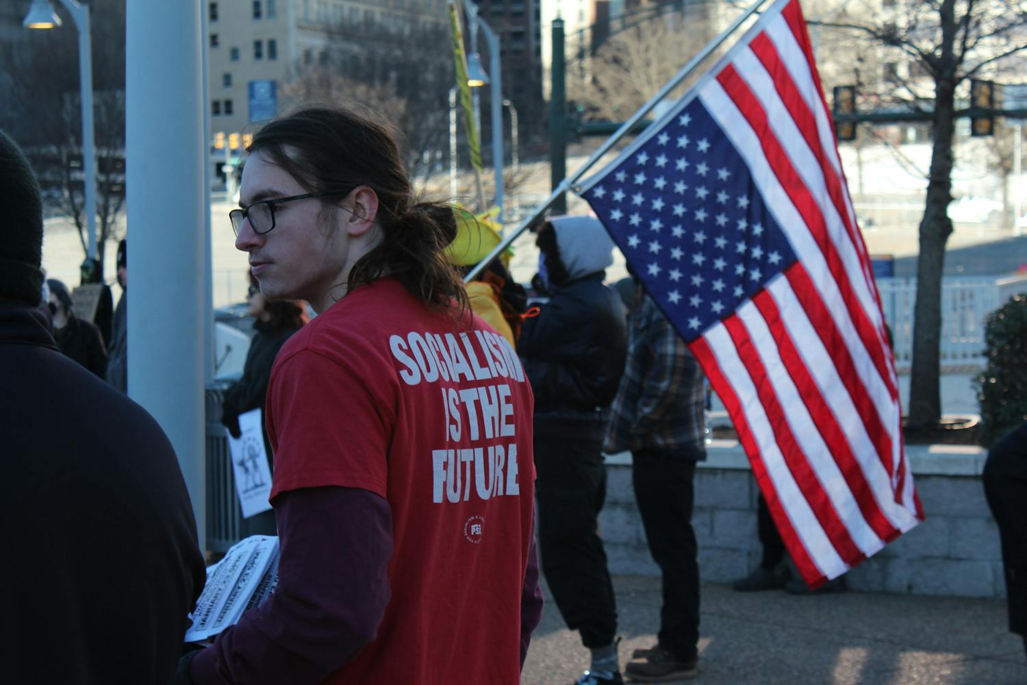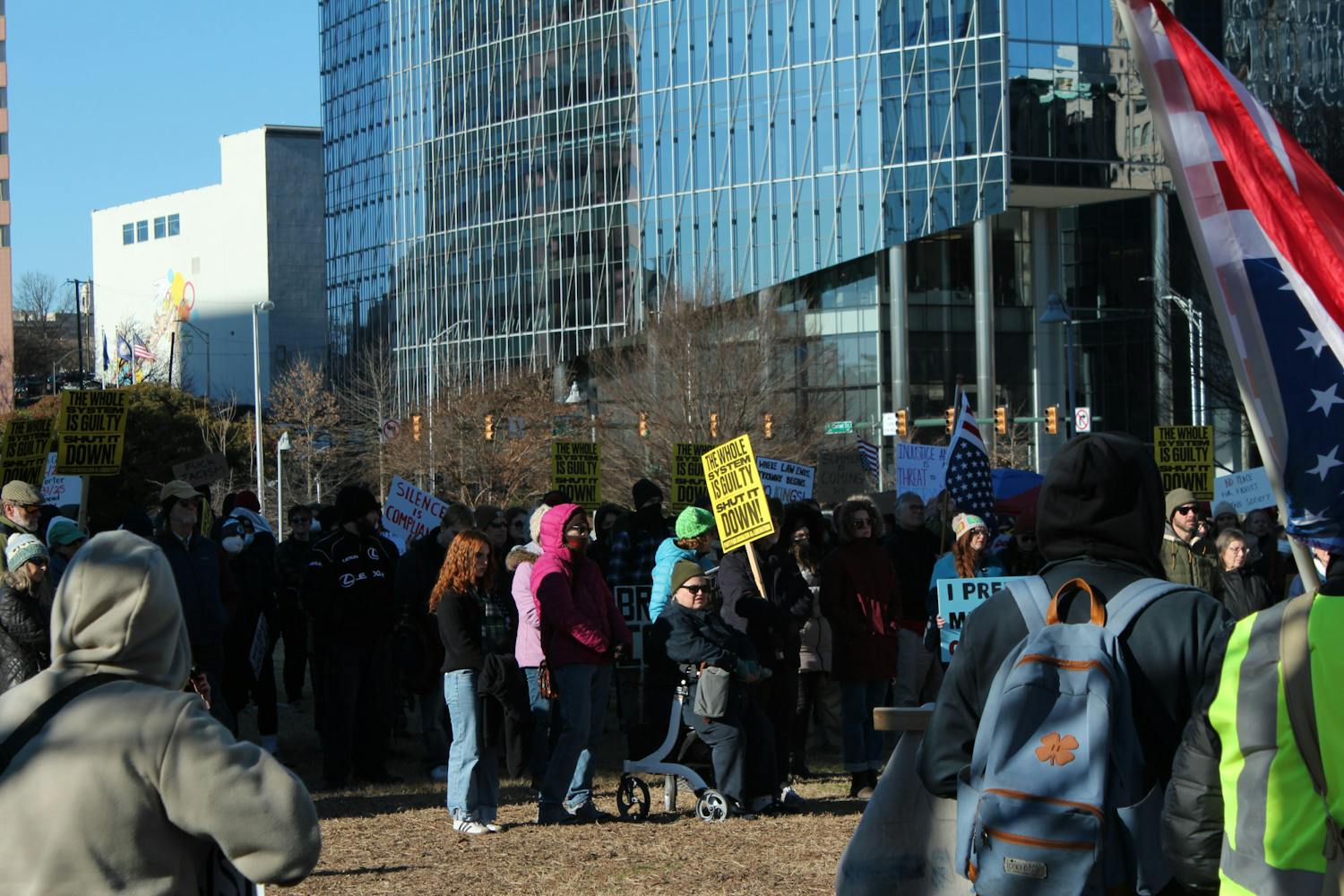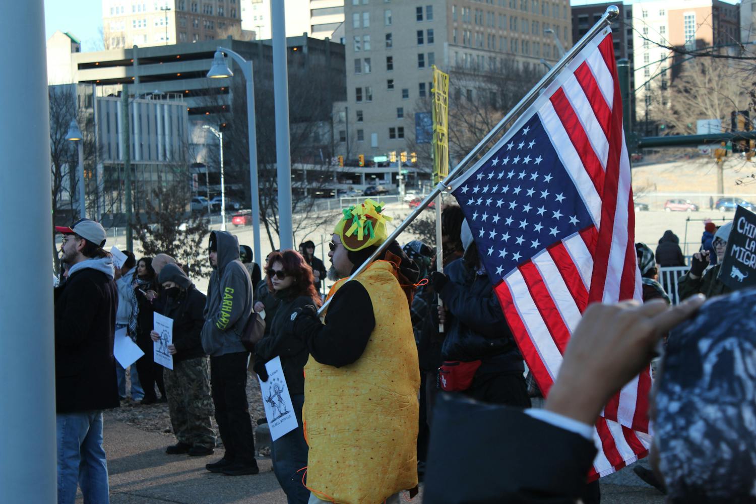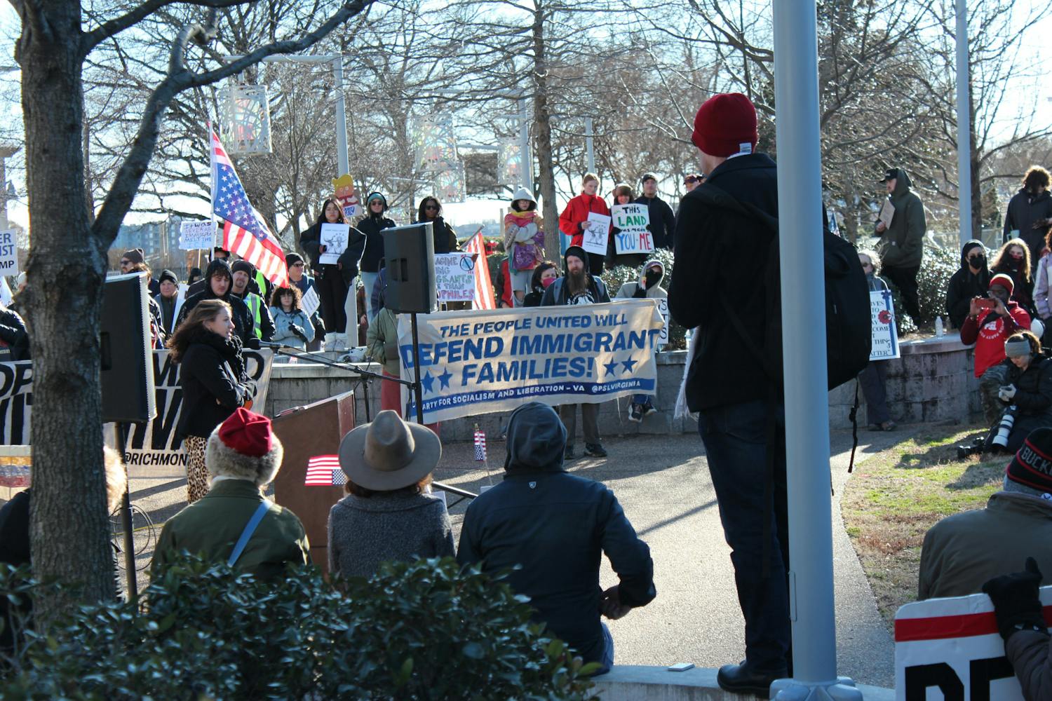 Protestors gathered at Kanawha Plaza in Richmond during the Virginia branch of the Free America Walkout on Jan. 20. Attendees held signs that decried ICE, while speakers called for Gov. Abigail Spanberger to keep ICE out of Virginia. Photos by Jonathan Sackett at jonathan.sackett@richmond.edu
