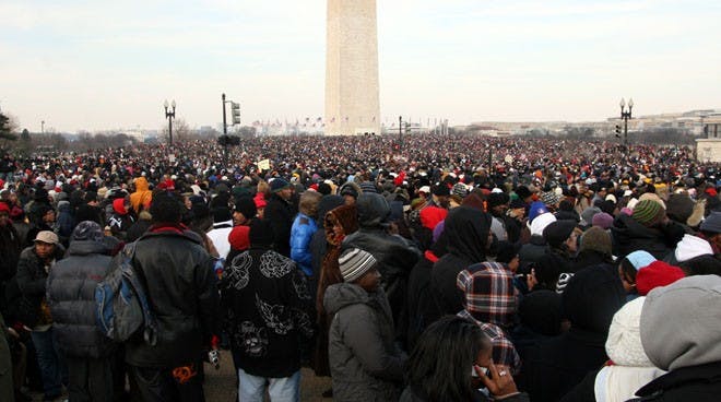WASHINGTON -- Barack Obama was sworn in as the 44th president of the United States Tuesday here in Washington, where more than 2 million people gathered to watch the first African-American become president.