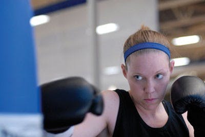 Kristina Perry attended the first day of classes this semester with a patch covering her left eye and a severely bruised lip. She was defeated by technical knockout on Jan.