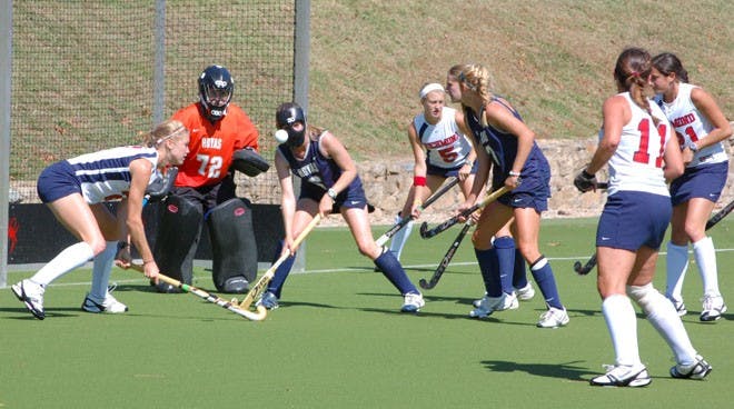 By Andrew Prezioso | October 9, 2009In its Atlantic-10 Conference opener win against Saint Louis University, the University of Richmond field hockey team tied or set three school records. The Spiders tied a school record for goals during a game with 12 as they shut out the Billikens. "The thing I was most excited about is that - outside of the penalty stroke which can't be an assisted goal - that eight of the other 12 goals that were scored were assisted." Richmond coach Gina Lucido said.