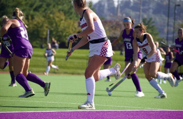 Fighting in rain and wind, the Spiders quickly put points on the board when first-year midfielder Grace Wiggins succeeded in a penalty corner shot within the first few minutes of the game.